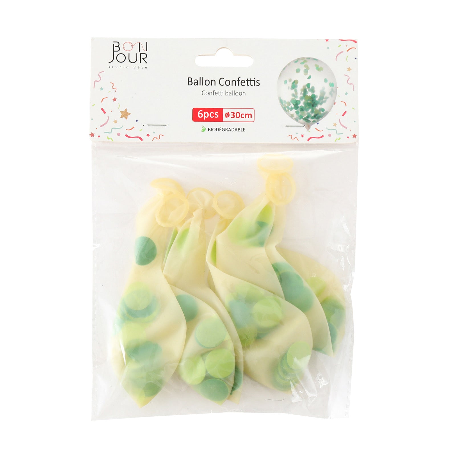 B5530 Ballon Confettis Vert 6Pcs 30cm
