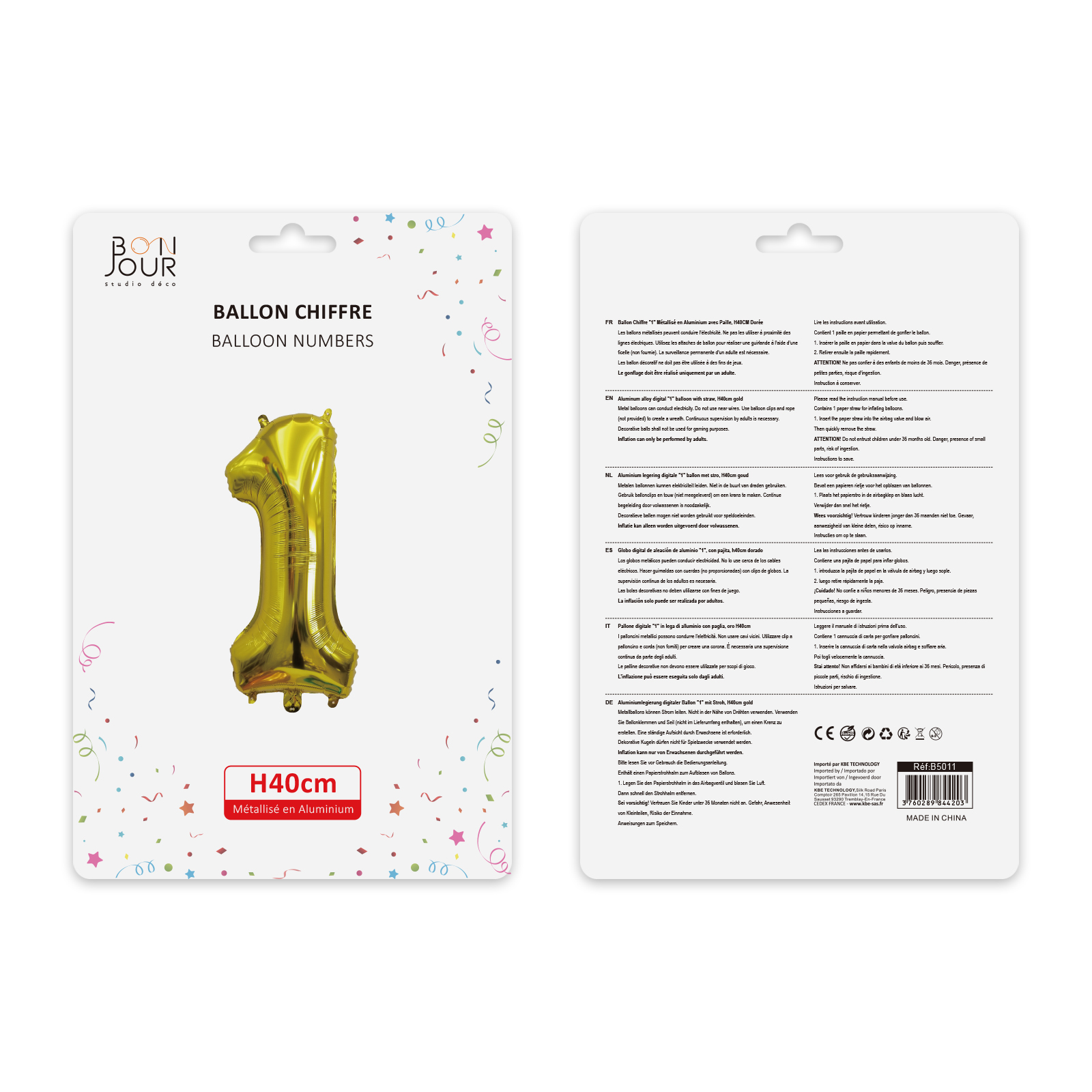 Ballon Chiffre 1 Or Hauteur 40cm - Bonjour Studio Déco