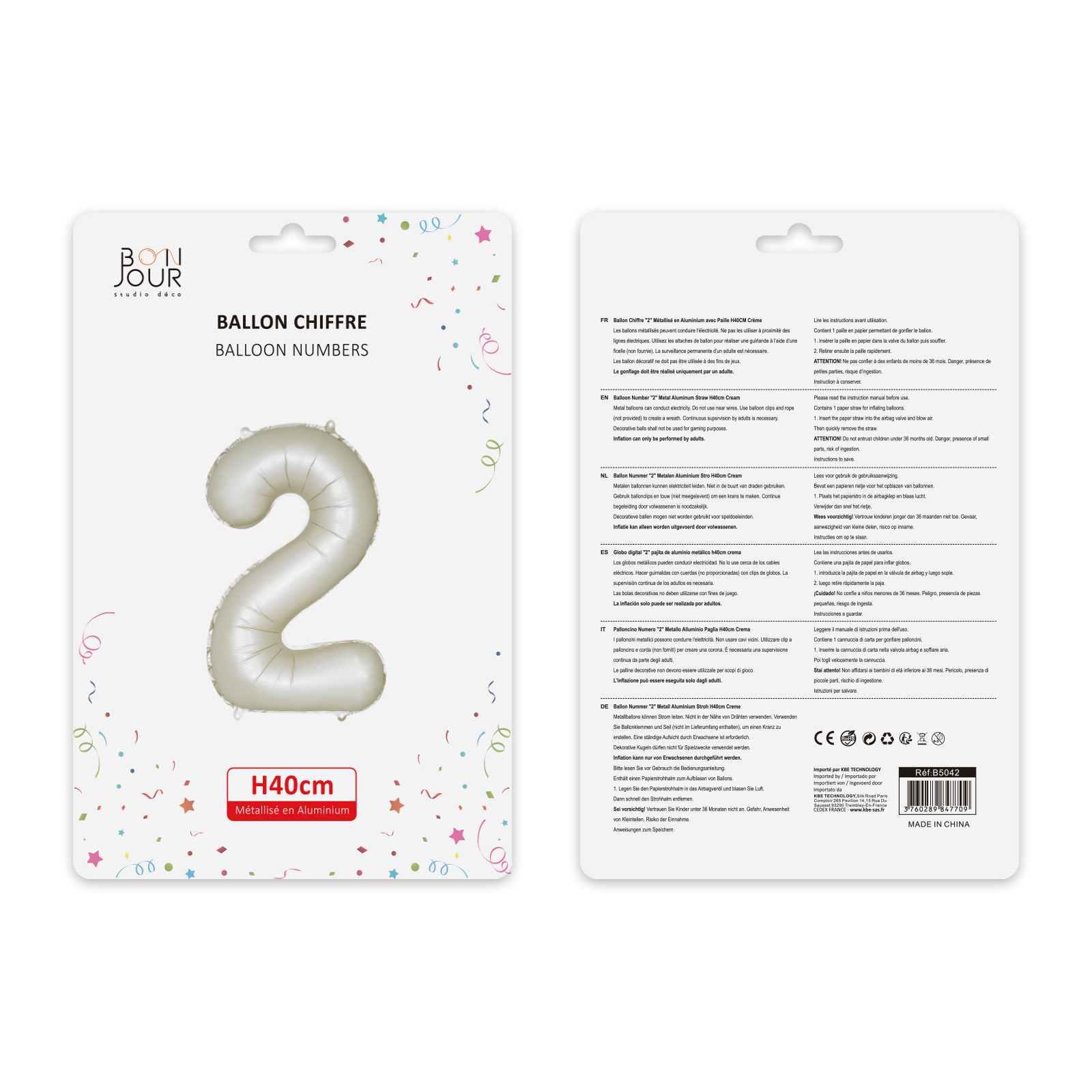 Ballon Chiffre 2 Blanc Crème Hauteur 40cm - Bonjour Studio Déco