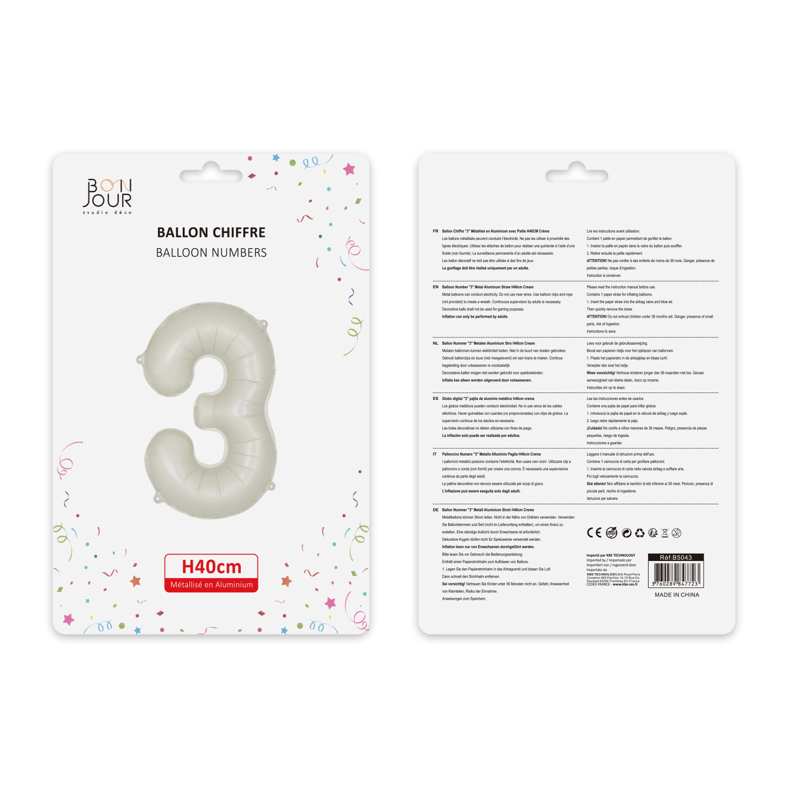 Ballon Chiffre 3 Blanc Crème Hauteur 40cm - Bonjour Studio Déco