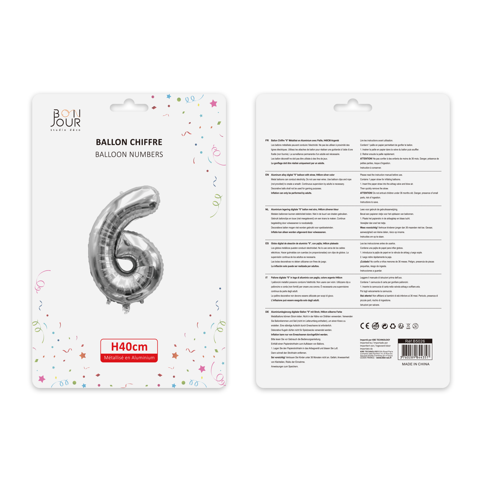 Ballon Chiffre 6 Argent Hauteur 40cm - Bonjour Studio Déco