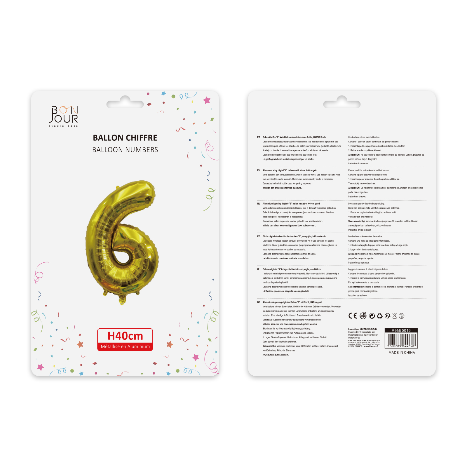 Ballon Chiffre 6 Or Hauteur 40cm - Bonjour Studio Déco