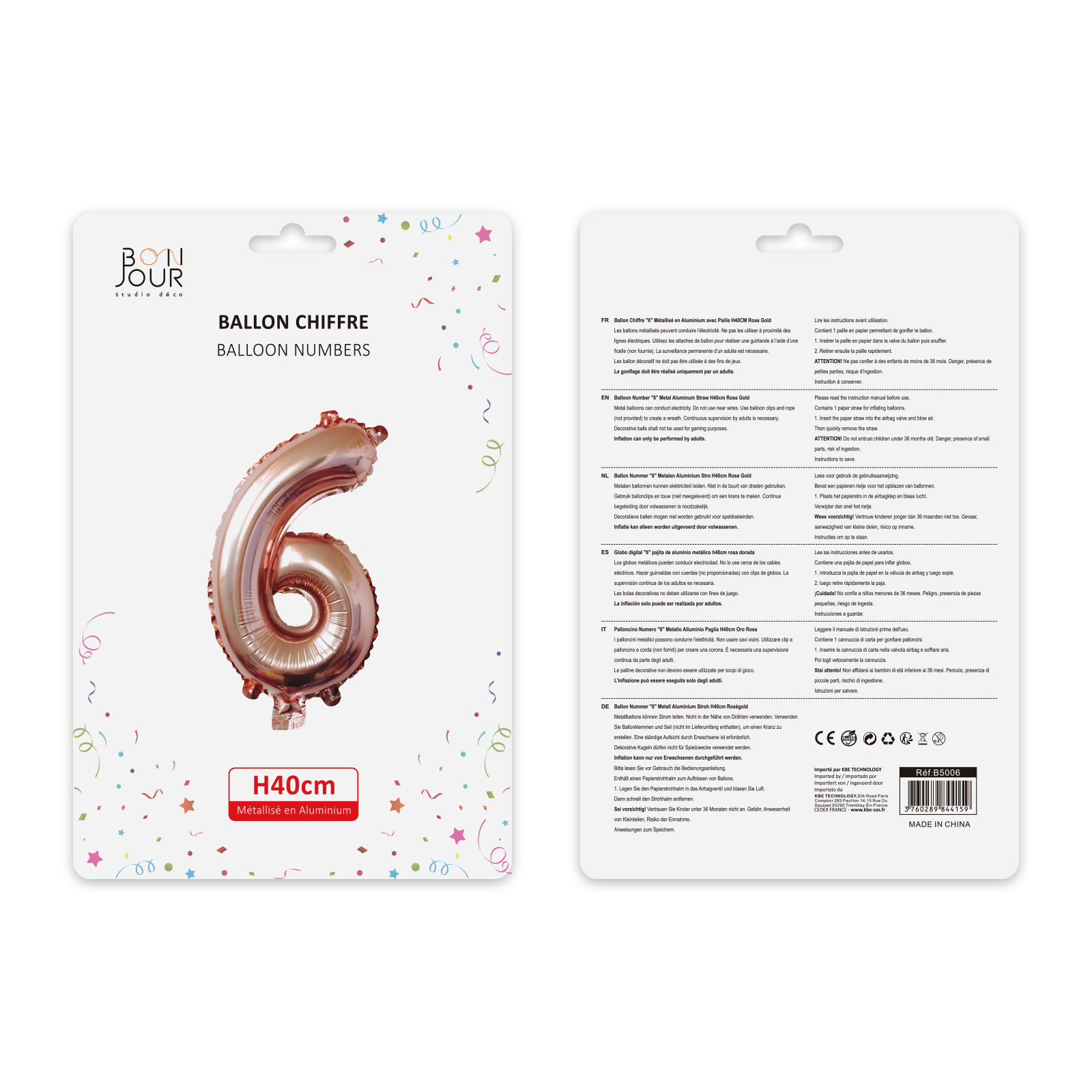 Ballon Chiffre 6 Rose Gold Hauteur 40cm - Bonjour Studio Déco