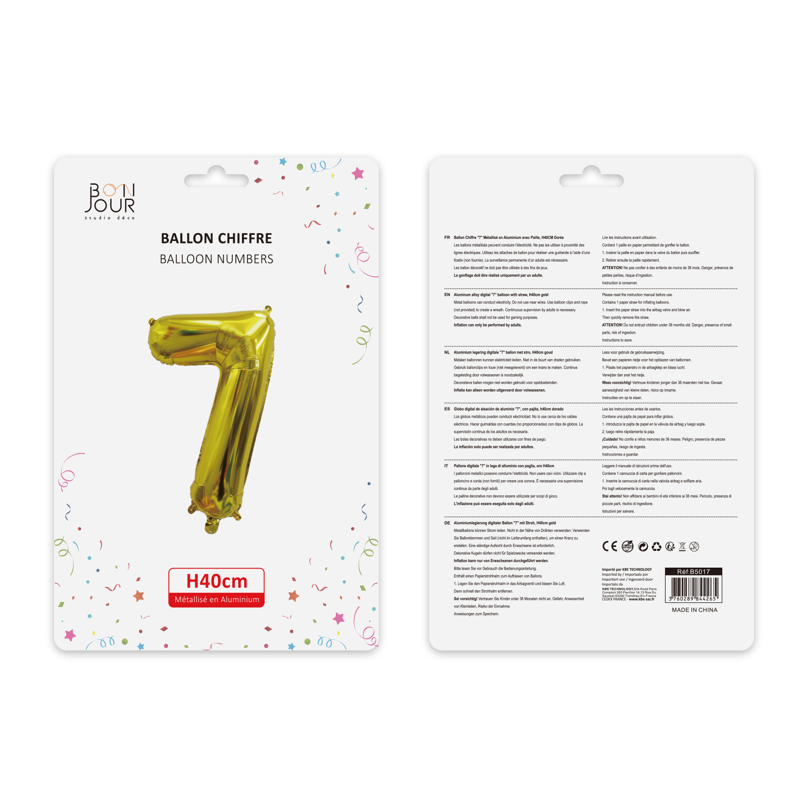 Ballon Chiffre 7 Or Hauteur 40cm - Bonjour Studio Déco