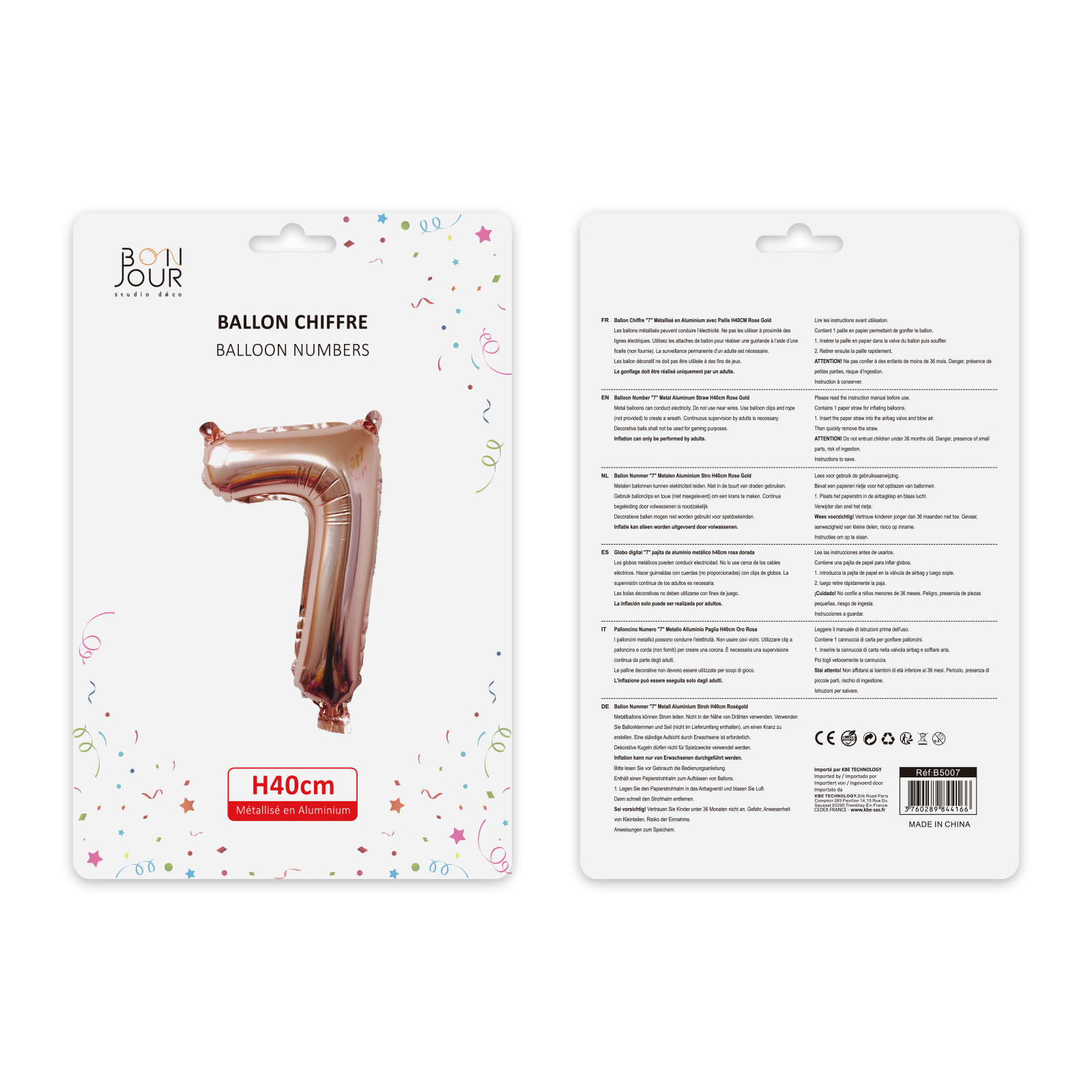 Ballon Chiffre 7 Rose Gold Hauteur 40cm - Bonjour Studio Déco
