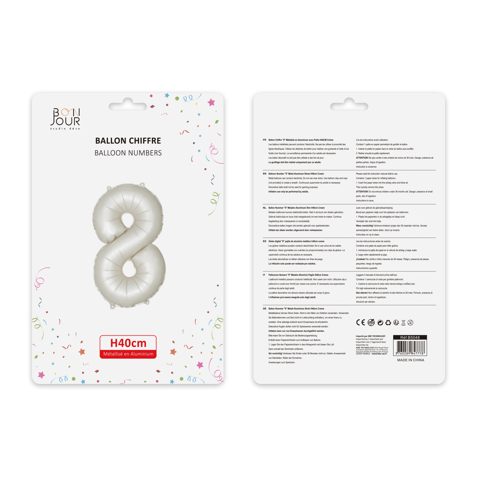 Ballon Chiffre 8 Blanc Crème Hauteur 40cm - Bonjour Studio Déco