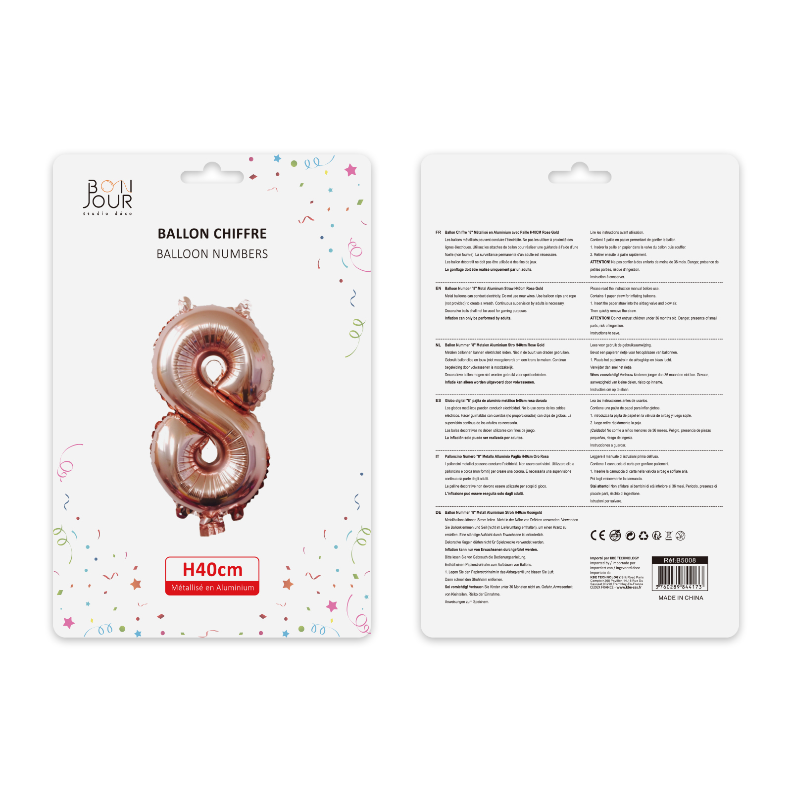 Ballon Chiffre 8 Rose Gold Hauteur 40cm - Bonjour Studio Déco