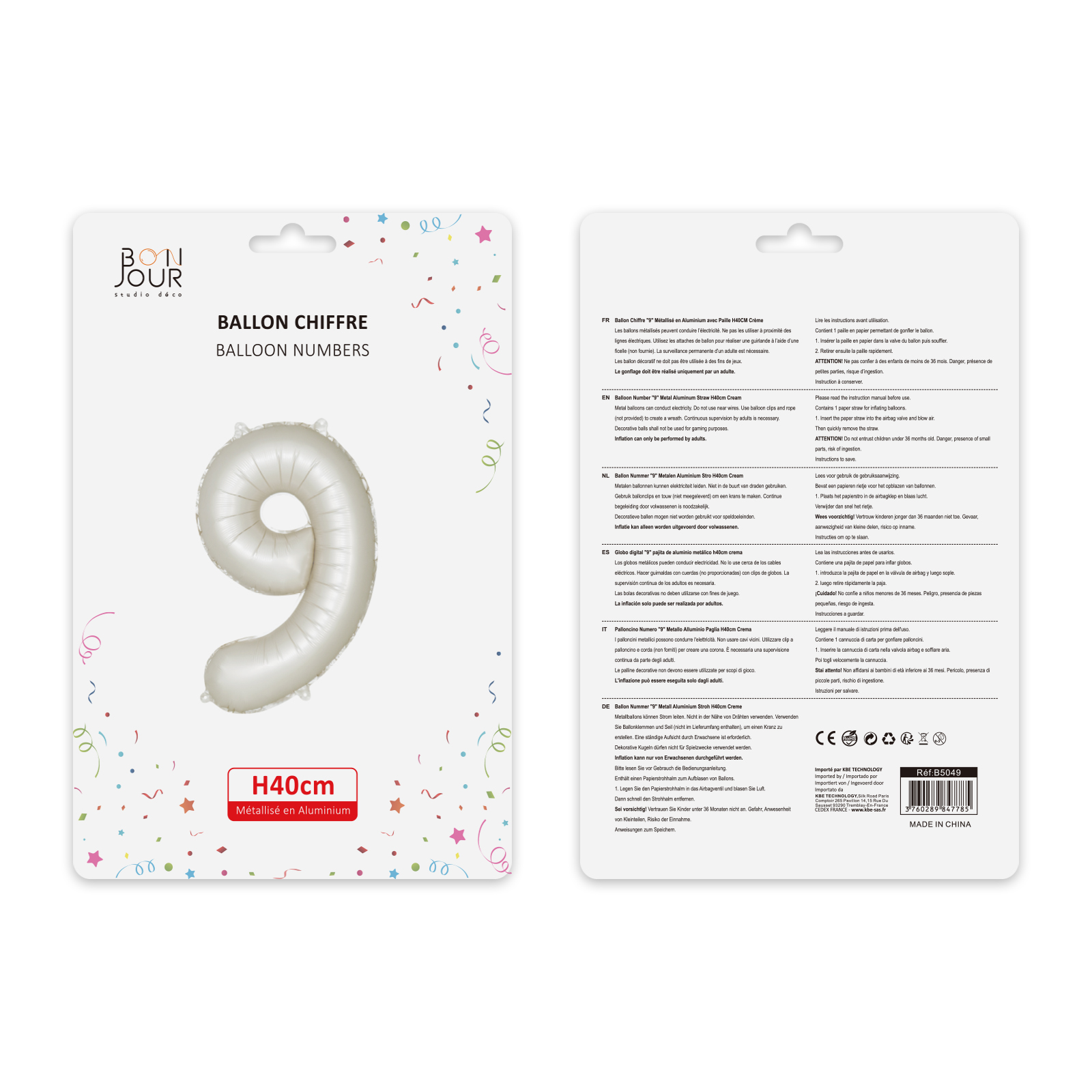 Ballon Chiffre 9 Blanc Crème Hauteur 40cm - Bonjour Studio Déco
