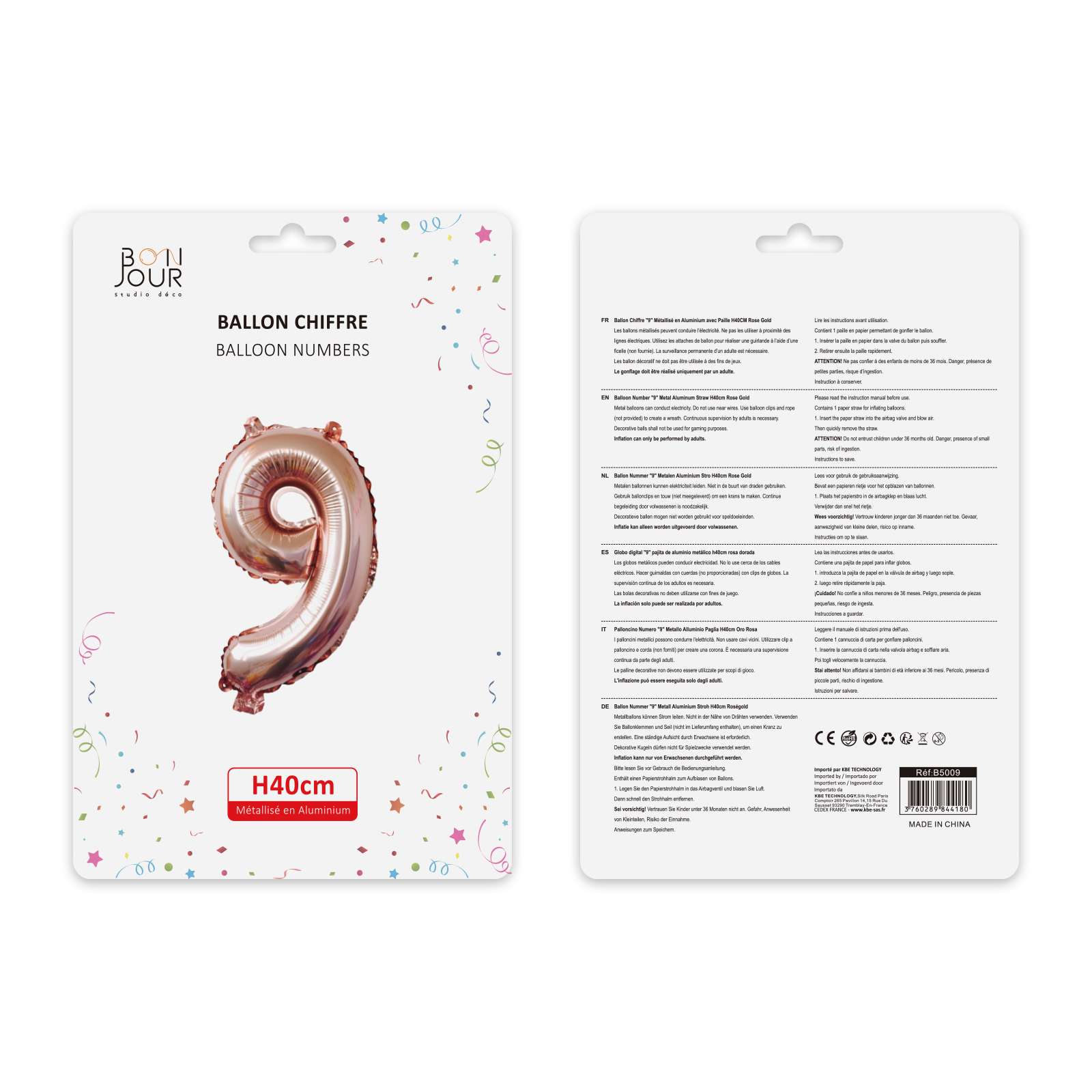Ballon Chiffre 9 Rose Gold Hauteur 40cm - Bonjour Studio Déco