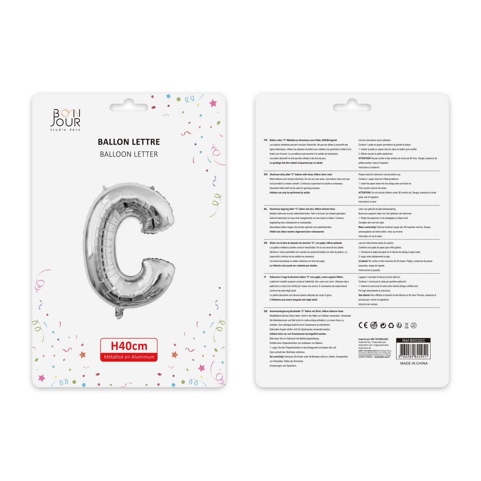 Ballon Lettre C Argent Hauteur 40cm - Bonjour Studio Déco