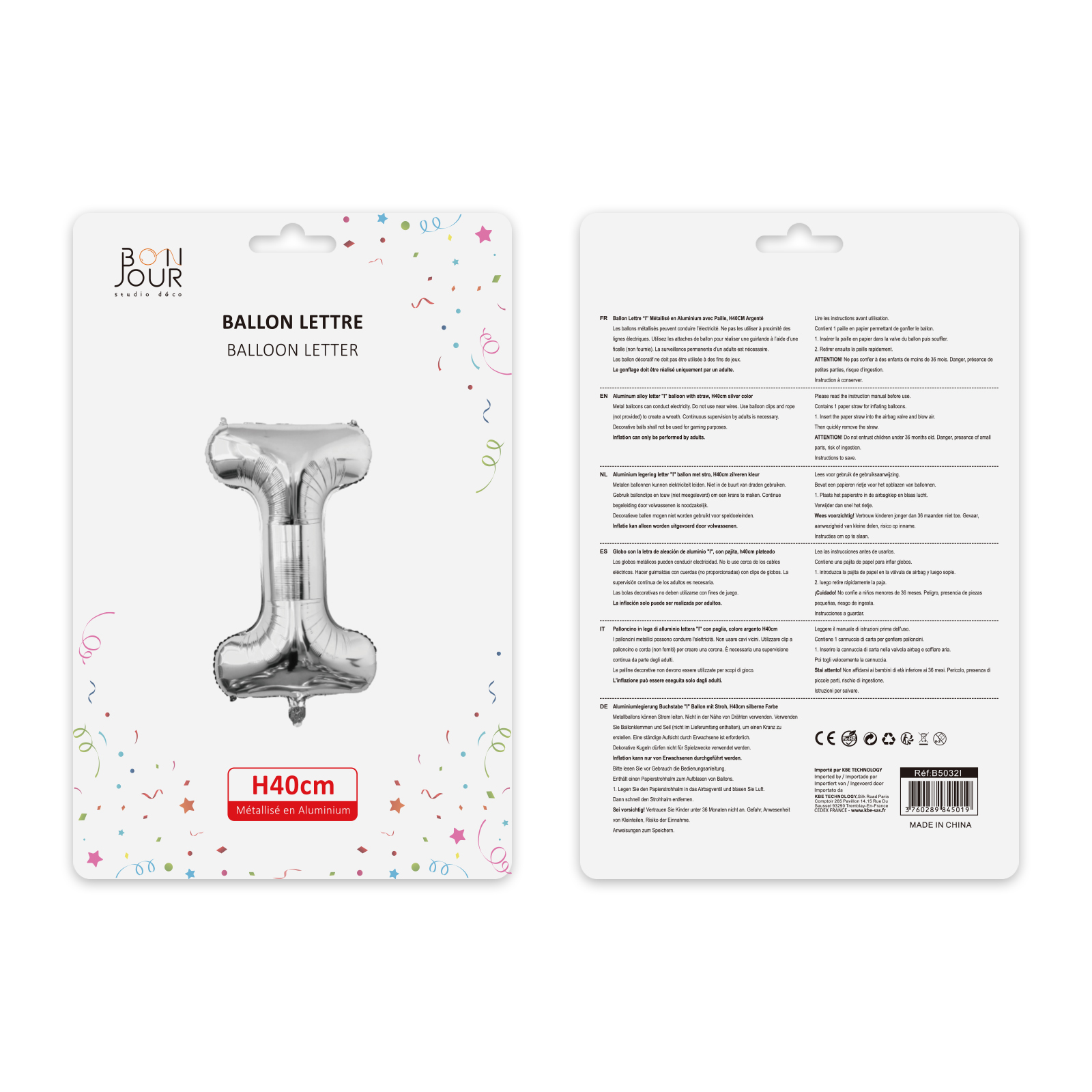 Ballon Lettre i Argent Hauteur 40cm - Bonjour Studio Déco