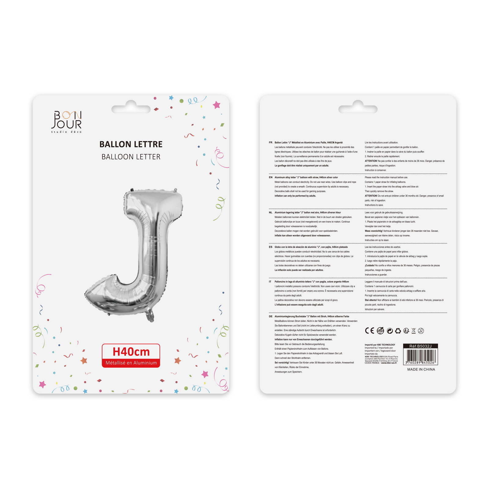 Ballon Lettre J Argent Hauteur 40cm - Bonjour Studio Déco