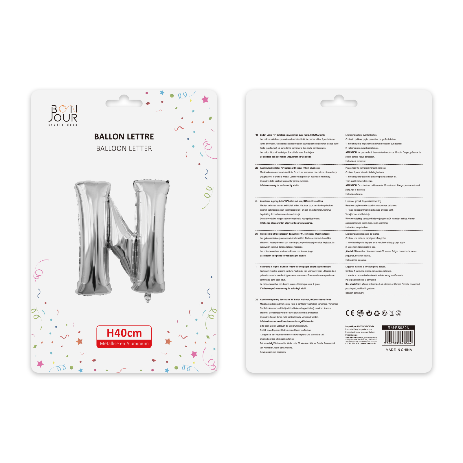Ballon Lettre N Argent Hauteur 40cm - Bonjour Studio Déco
