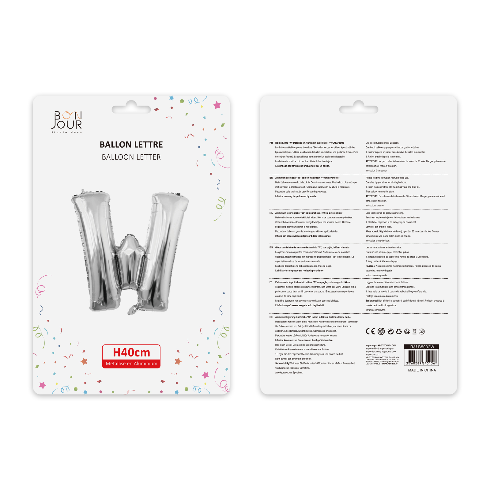 Ballon Lettre W Argent Hauteur 40cm - Bonjour Studio Déco